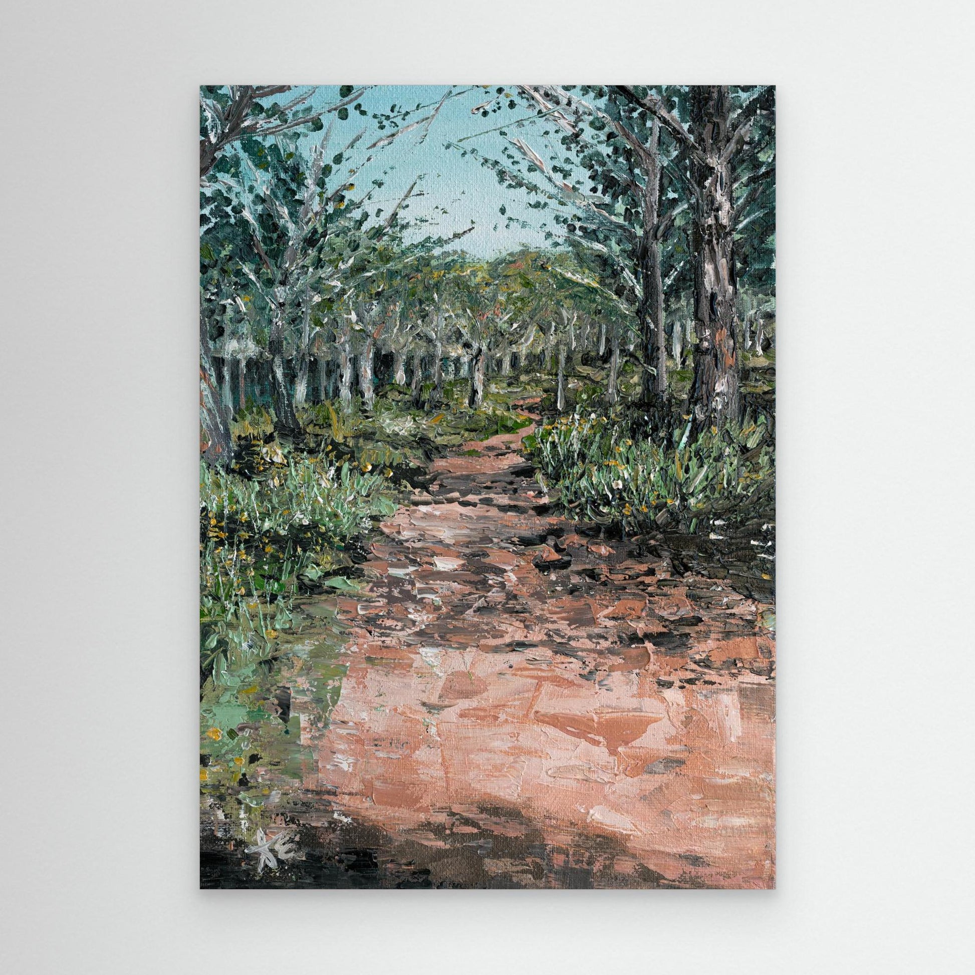 This painting portrays a charming winding path, a familiar sight in the picturesque landscapes of Portugal, inviting a sense of discovery and gentle exploration.
