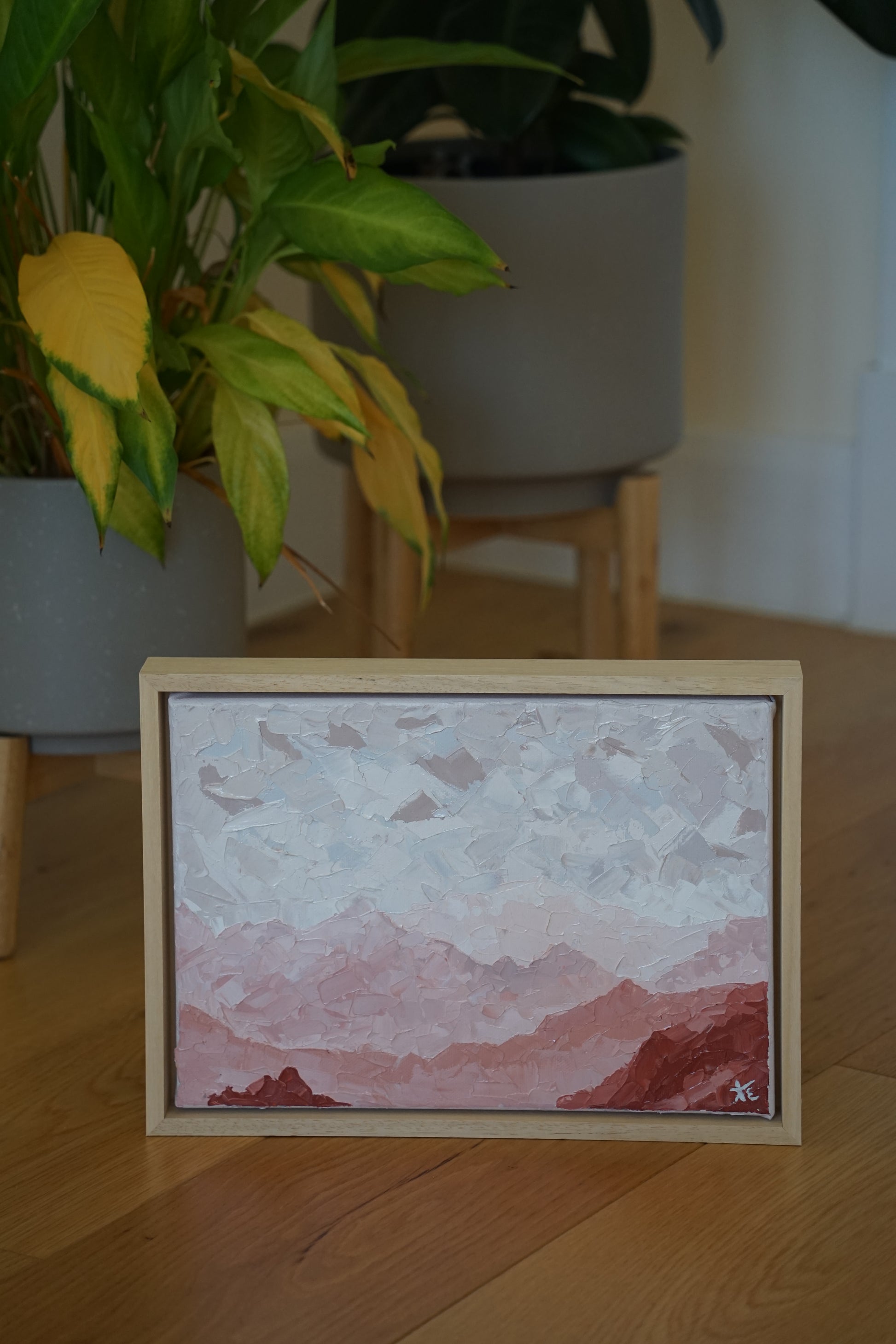 Oil painting on stretched canvas. Framed in a natural wooden floater frame, with a 36mm/53mm depth to give your artwork that stunning floating effect. Ready to hang.