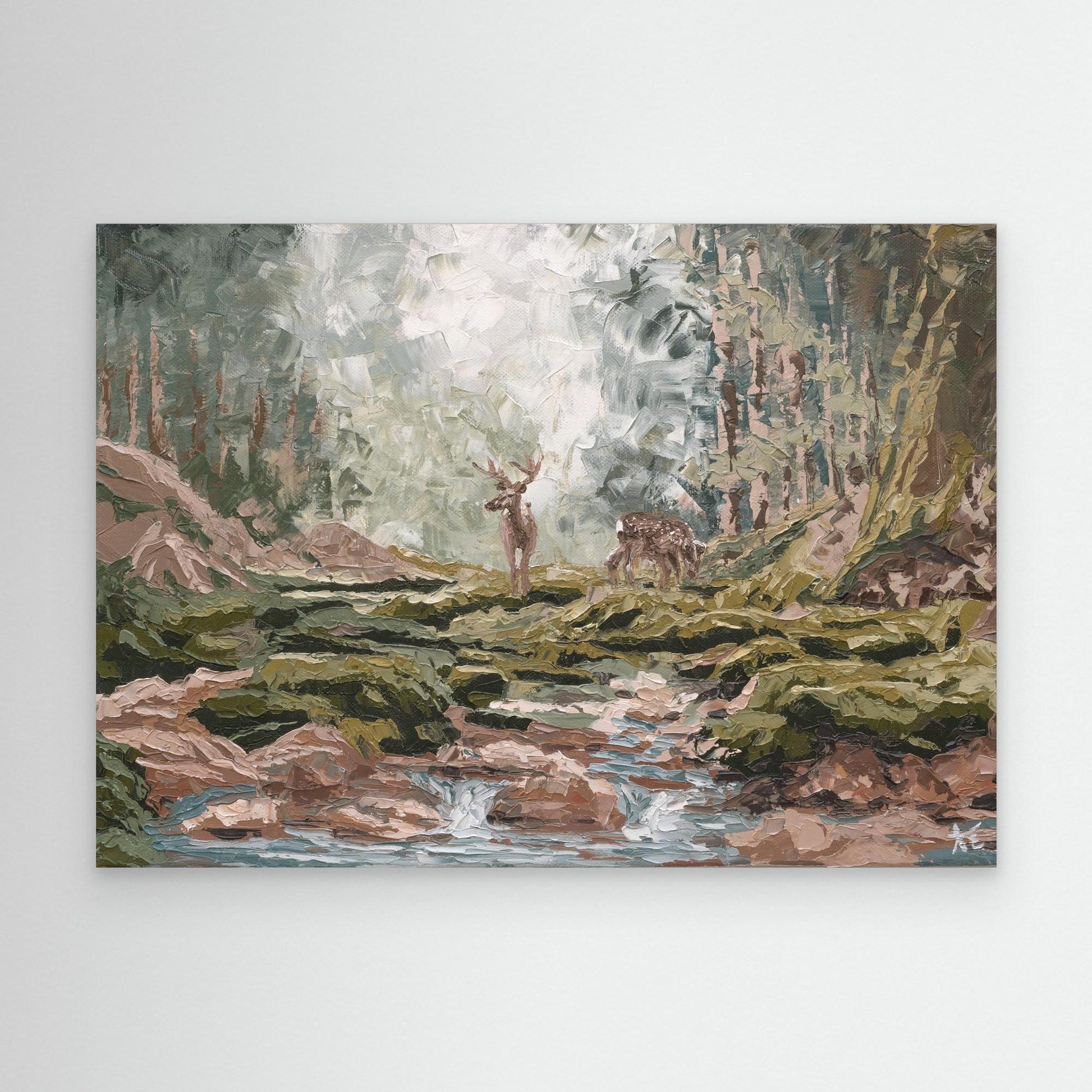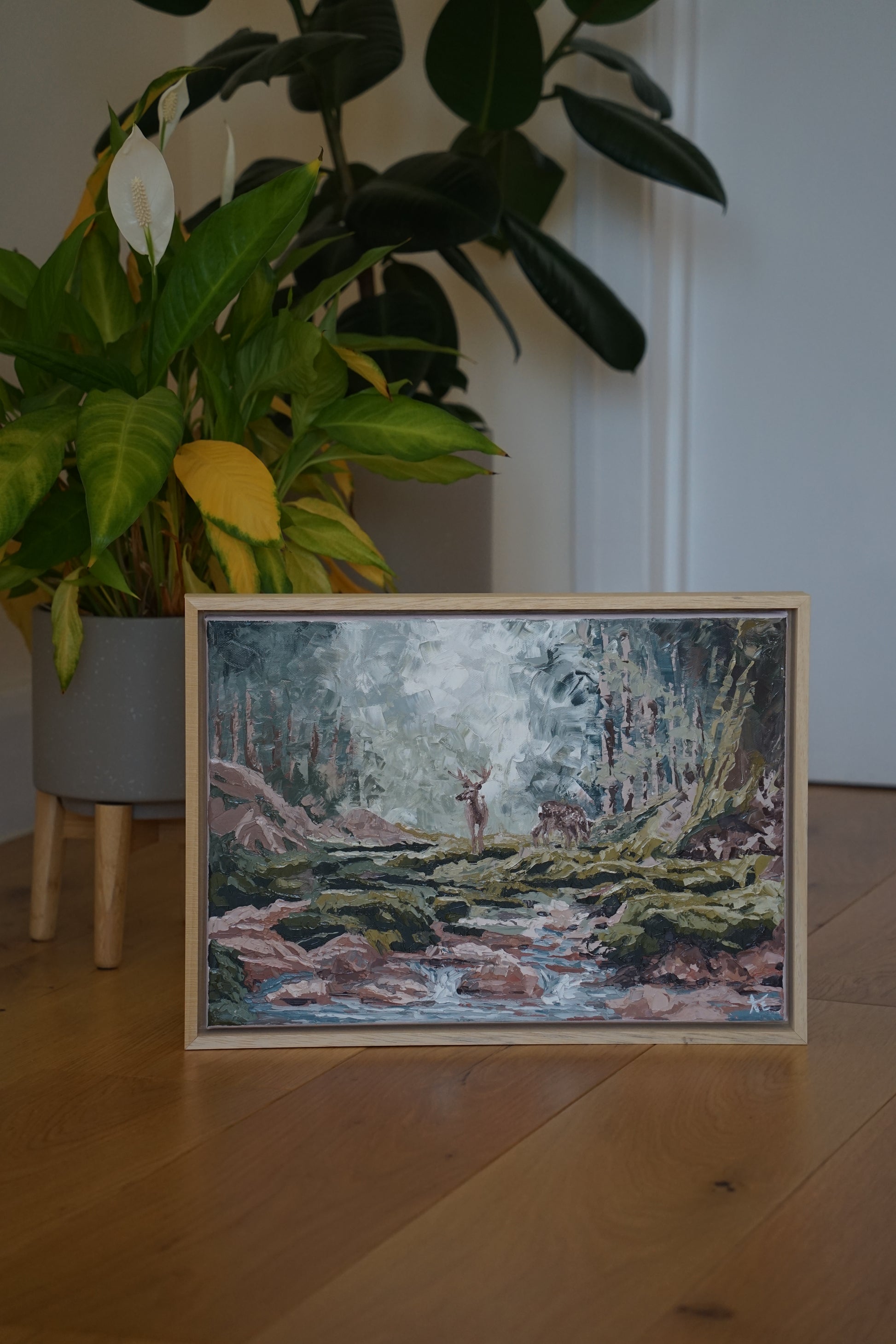 Oil painting on stretched canvas. Framed in a natural wooden floater frame, with a 36mm/53mm depth to give your artwork that stunning floating effect. Ready to hang.