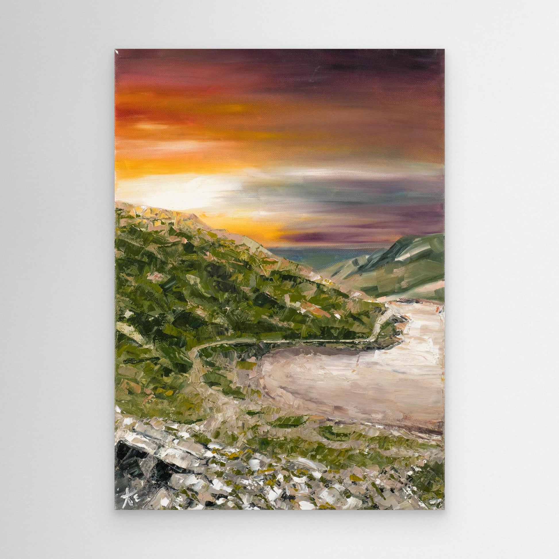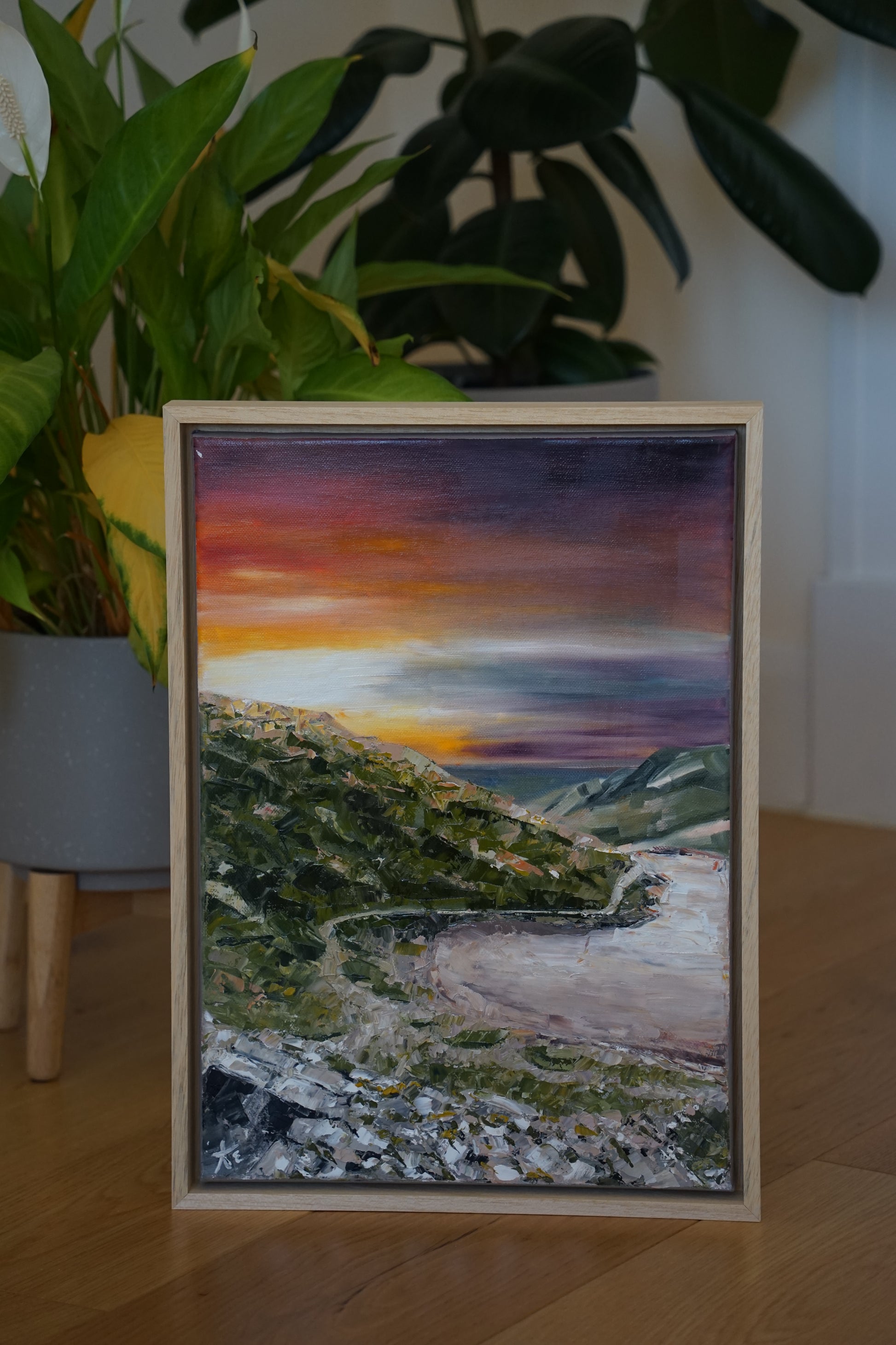 Oil painting on stretched canvas. Framed in a natural wooden floater frame, with a 36mm/53mm depth to give your artwork that stunning floating effect. Ready to hang.